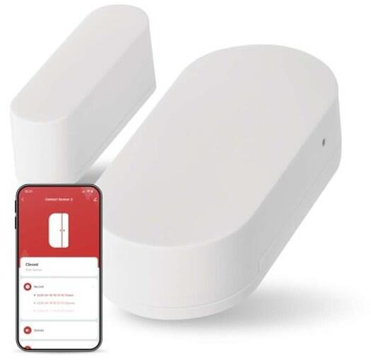 termék: ajtó/ablak érzékelő, szín: fehér, védettség: IP20, érzékelő típusa: mágneses, táplálás: 1× CR2032 (3 V), méretek: 25 × 55 × 8 mm, értékesítési csomagolás: 1 db, kis doboz, jelátviteli frekvencia: 2,4 GHz (2 405-2 480 MHz), szerelési anyag: #, garancia-időszak: 2 év